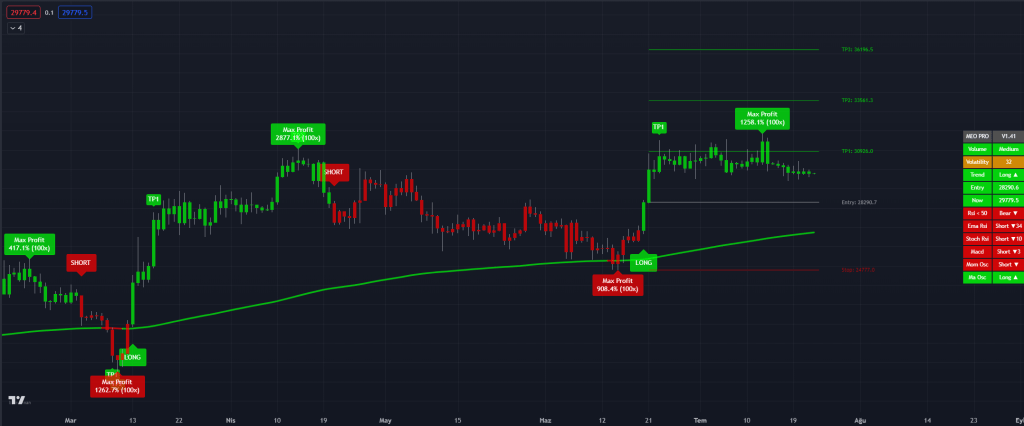 TradingView, birçok farklı indikatörü bir arada sunan bir platformdur. MEO PRO, bu platformda da kullanılabilir ve TradingView kullanıcılarına trendleri takip etme, hacim analizi yapma ve alım satım sinyalleri almak gibi çeşitli özellikler sunar.