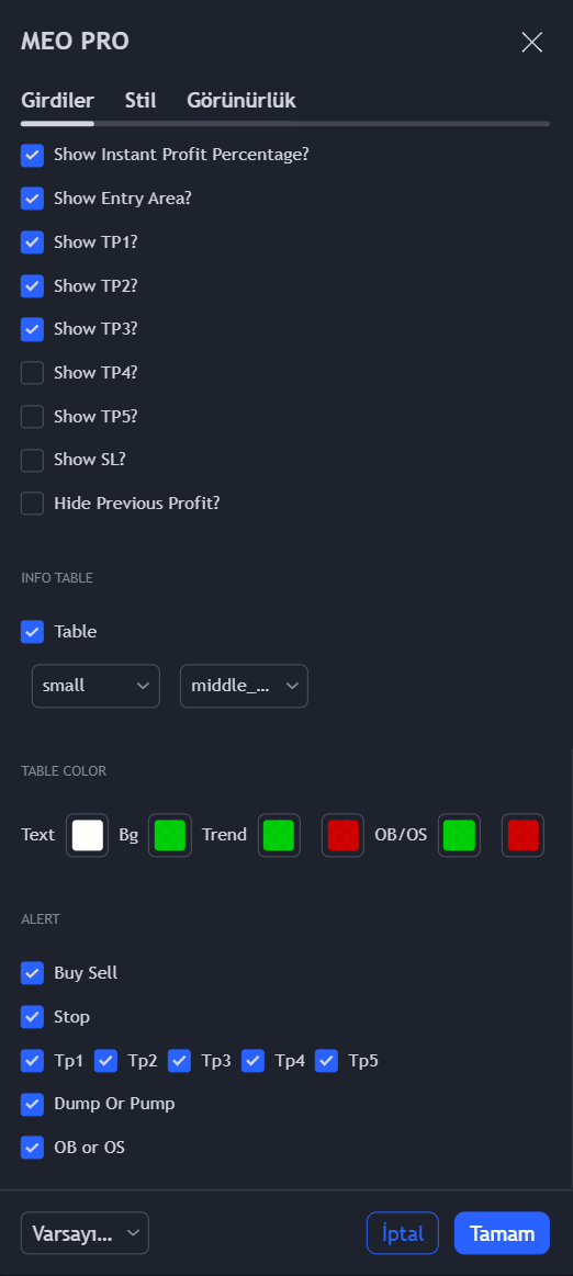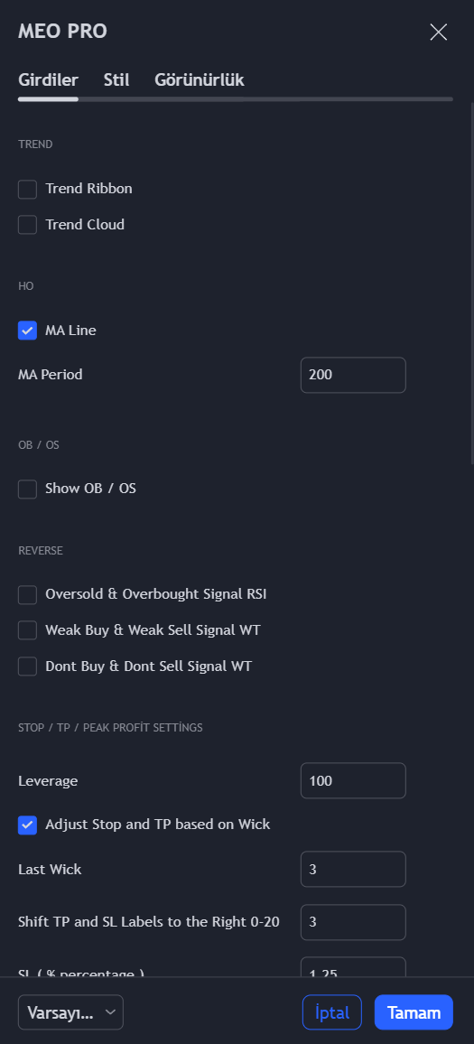 MEO PRO, yatırımcıların piyasadaki hareketleri etkin bir şekilde takip etmelerine yardımcı olan kapsamlı bir indikatördür. Trend Tablosu, Hacim Ölçer, Volatilite Ölçer, Giriş ve Canlı Fiyat gibi özellikleriyle, kripto para birimlerinin alım satımında sağlam bir yardımcıdır. Ek olarak, RSI boğa ve ayı durumları, RSI aşırı satım ve aşırı alım durumları, Stoch Osc, MACD Osc, MOM Osc, MA Osc gibi özellikler de MEO PRO’nun geniş araçlarından birkaçıdır. Ayrıca, trendlerin belirlenmesine yardımcı olan Trend Kurdelesi, Trend Bulutu ve MA Çizgisi gibi görsel araçları da mevcuttur. MEO PRO, yatırımcıların ve tüccarların piyasa hareketlerini daha doğru bir şekilde anlamalarına ve tahmin etmelerine olanak sağlar.
